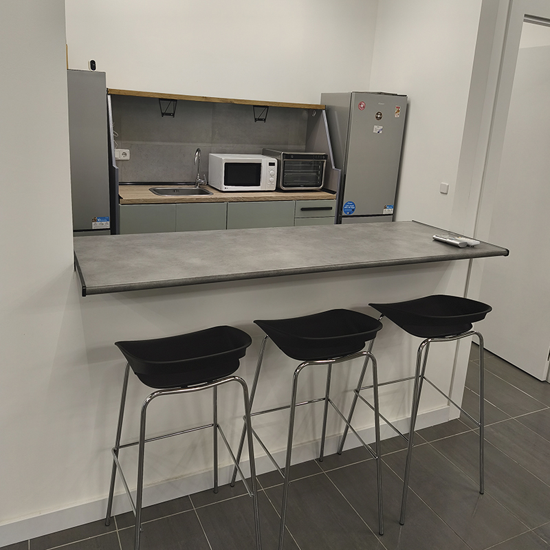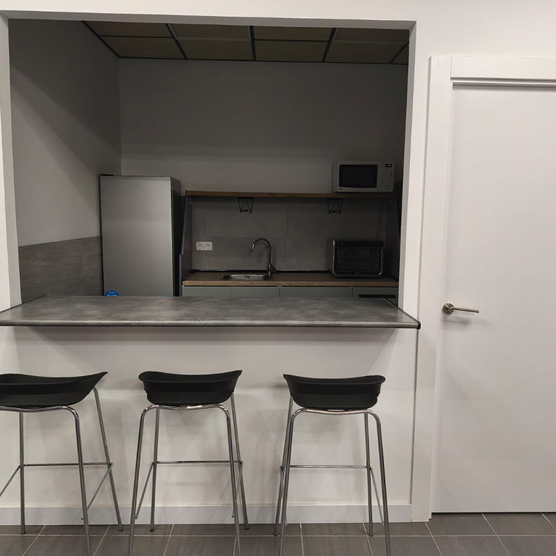 Una cocina completa para preparar aperitivos, servir comidas o mantener todo organizado durante la celebración.